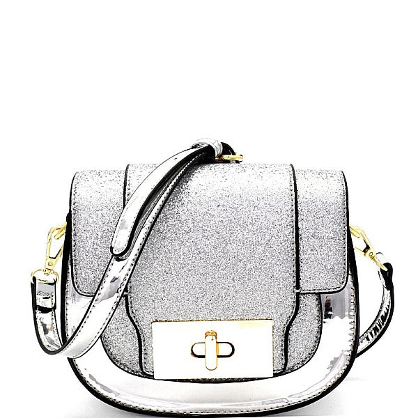 Glittered Flap Metallic Saddle Bag with detachable strap.