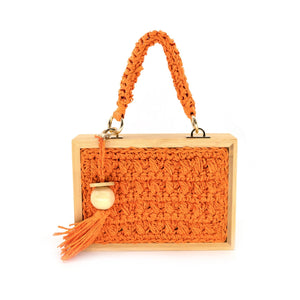 Straw and wood Bag with Chain