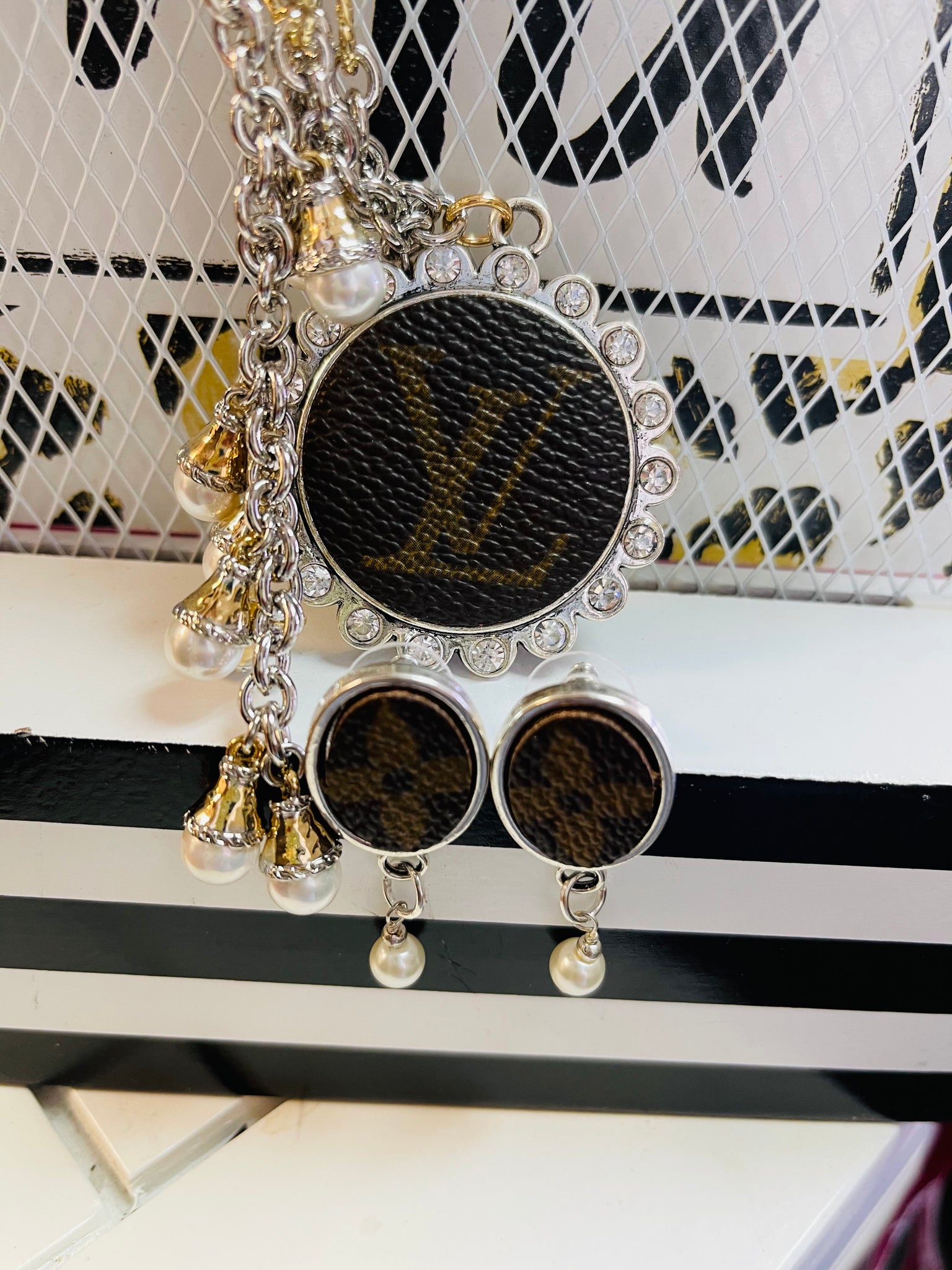 Upcycled Designer Stud Earring trimmed with silver and pearl dangled