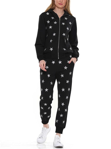 Black Hooded Jacket with Silver Stars