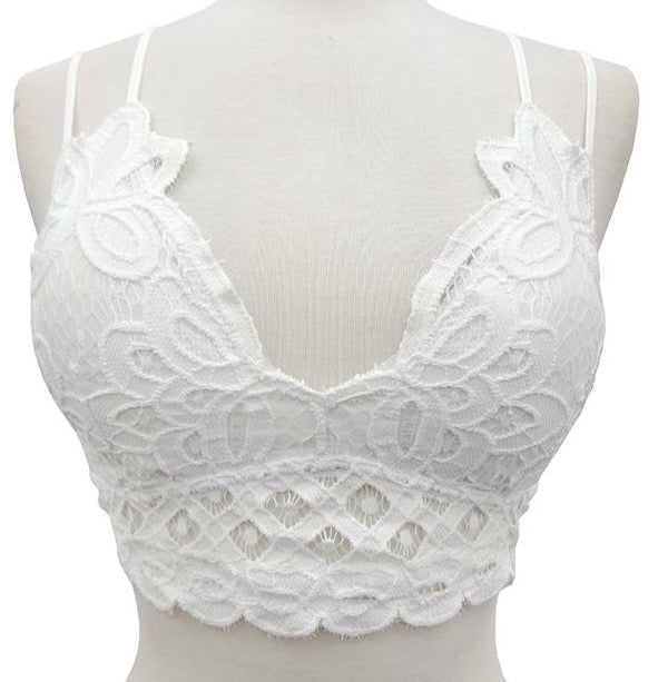 Padded Scalloped Lace Crisscross Back Adjustable Strap Bralette