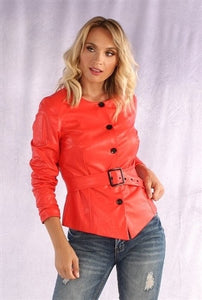 Long Sleeve Ribbon Cuff Faux Leather Peplum Top