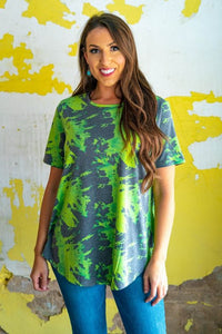 NEON LIME TIE DYE BASIC CREW NECK SHORT SLEEVE